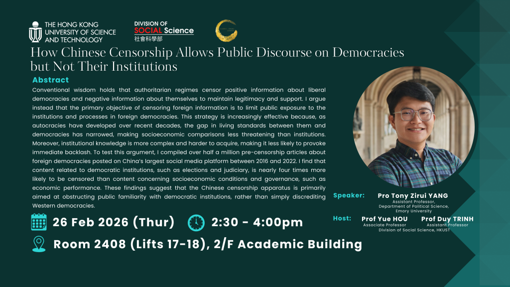 Host: Prof Yue HOU, Associate Professor, Division of Social Science, HKUST